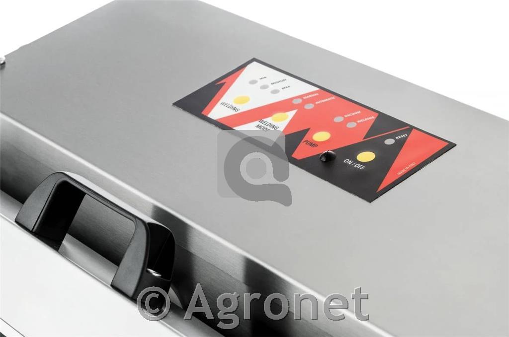 Z ohišjem iz nerjaveče pločevine in z polavtomatskim ciklusom pakiranja. Namenjen je profesionalni in gospodinjski uporabi.