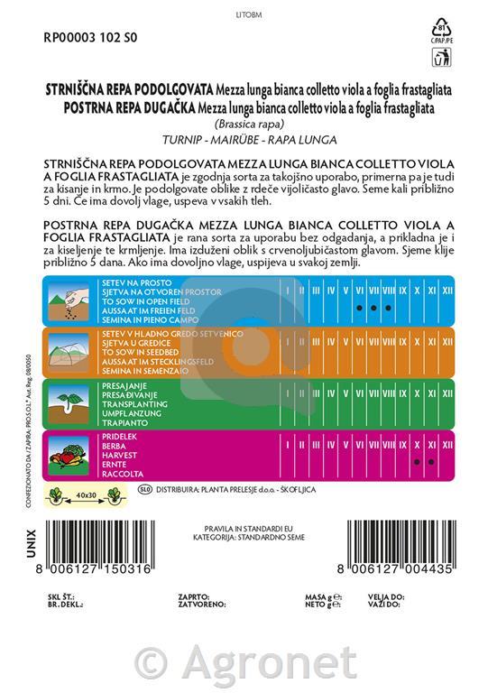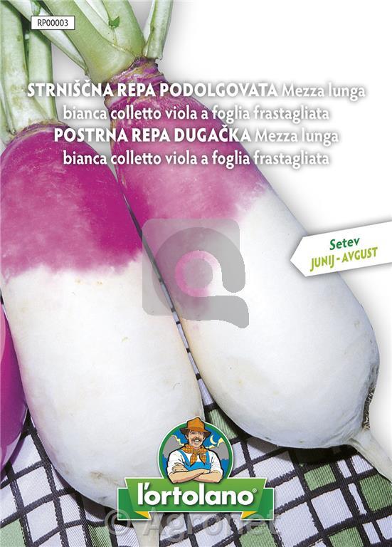 Strniščna repa podolgovata je zgodnja sorta za takojšno uporabo, primerna pa je tudi za kisanje in krmo. Je ploščato okrogle oblike z rdečo vijoilčasto glavo. Seme kali približno 5 dni. Če ima dovolj vlage uspeva v vsakih tleh. Dobro uspeva v soseščini solate, špinače in fižola.