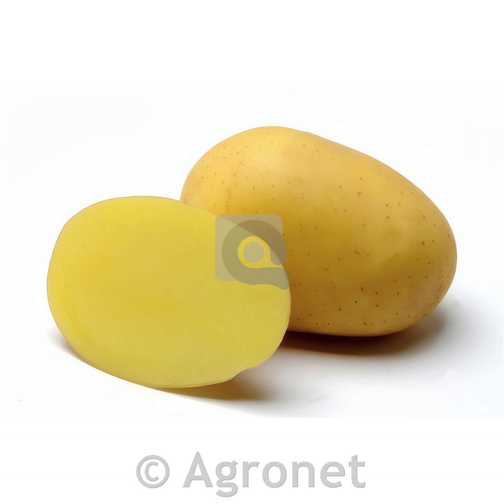 - Oblika gomoljev: Ovalna oblika, z gladko rumeno lupino in rumenim mesom.
