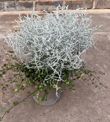 Calocephalus muechbergi ‘Duo’ je izjemno dekorativna trajnica, ki navdušuje s svojo kompaktno rastjo in sivimi, igličastimi listi. Ta sorta je primerna za ustvarjanje kontrastnih zasaditev v gredicah, skalnjakih ali posodah. Sadika tvori gosto, razvejano rast, ki je obstojna skozi vse leto in preživi različne vremenske razmere.