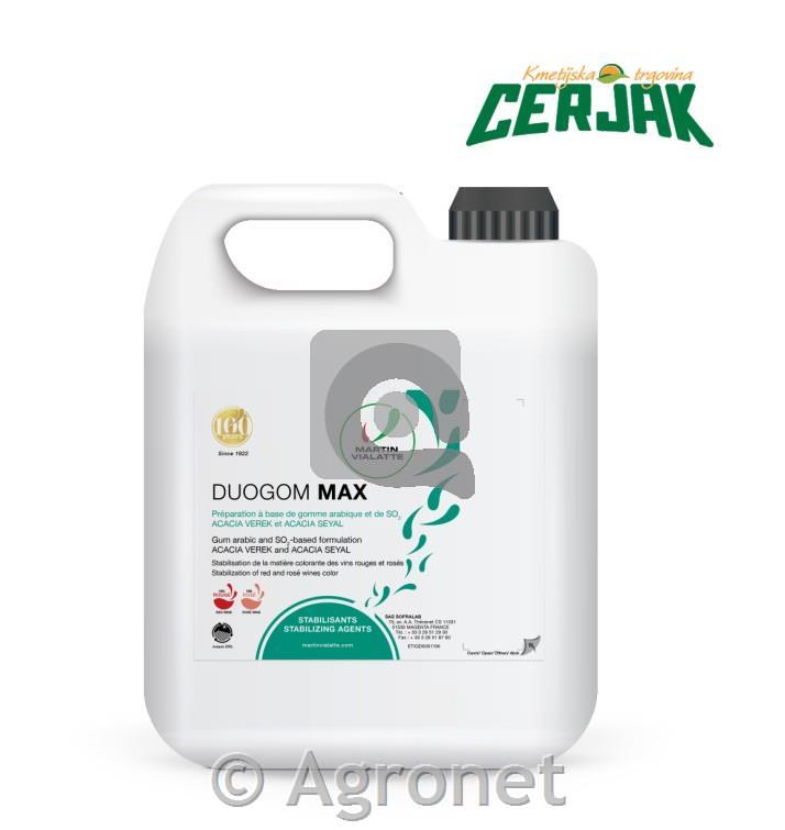 DUOGOM MAX je priporočljiv pri koloidni stabilizaciji, za zagotavljanje polnosti in sladkosti vina ter krepitev aromatičnih značilnosti belih in rosé vin. Ta izdelek je bil zasnovan posebej z namenom olajšati vinarjem delo, saj lahko sedaj v enem samem koraku vino koloidno stabilizirajo in zagotovijo polnost ter sladkobo. Njegove sposobnosti za stabilizacijo lahko opazimo tudi na organoleptični ravni, saj zagotavlja izrazitejšo aromo.