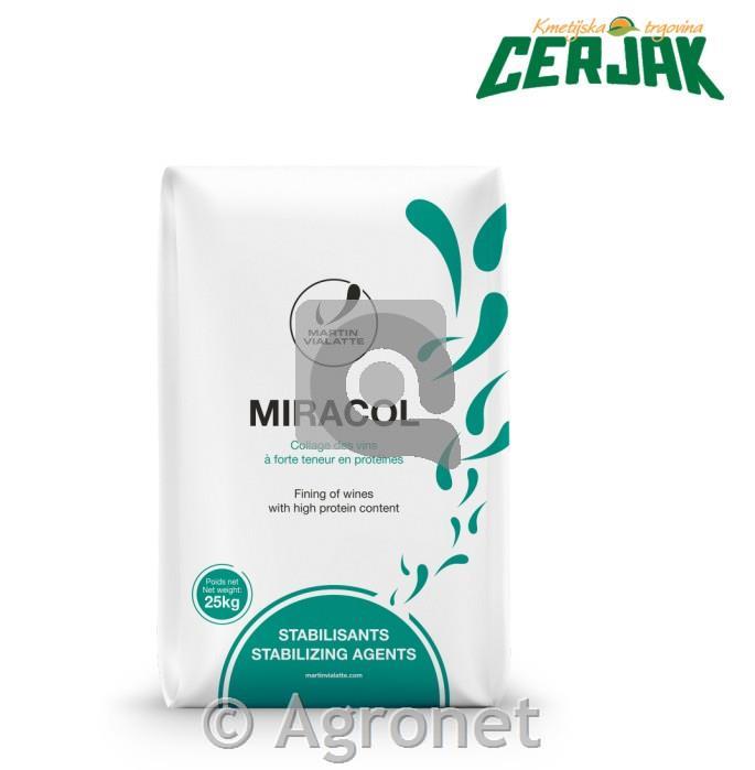Uporaba: | Uporaba izdelka je podobna uporabi bentonitov, ampak z manjšimi količinami (10 do 20 g / hL). MIRACOL se večinoma uporablja na belih vinih, ki so težka za obdelavo in ki bi drugače potrebovala velike količine bentonita za učinkovito obdelavo. |