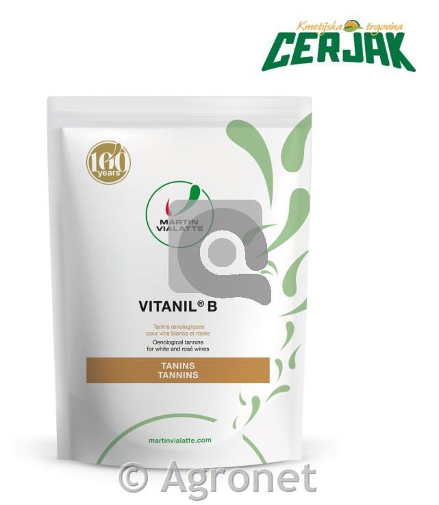 tanin VITANIL B je galotanin pridobljen z alkoholom in je popolna izbira za bistrenje belih vin. Če ga dodamo moštu, izdelek na pretakanje in bistrenje deluje tako, da reagira z odvečnimi beljakovinami. Poleg drugih substanc, odstranjuje tudi naravno oksidazo grozdja (kvasovka Botrytis izloča tirozinazo in laktazo).